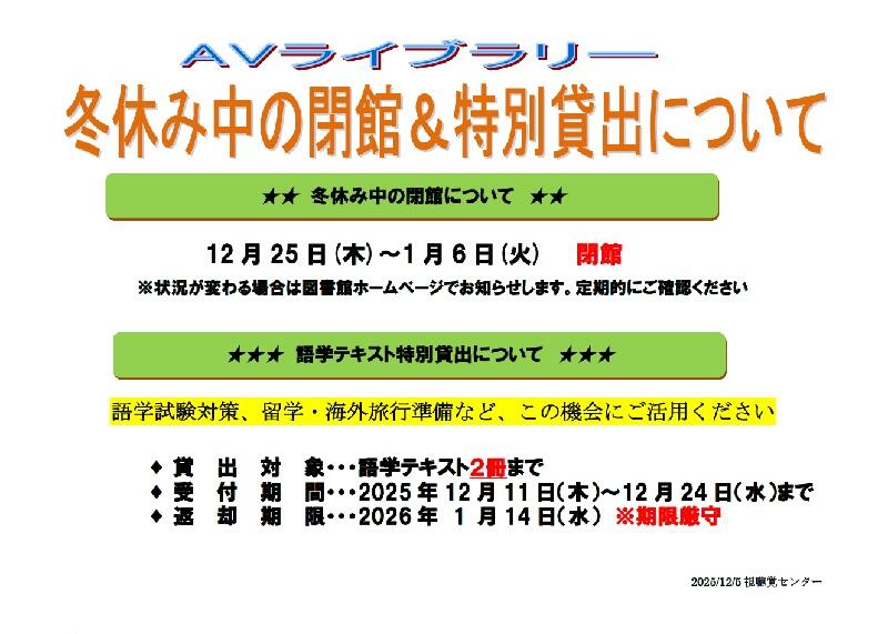 【AVライブラリー】冬休み中の閉館&特別貸出について